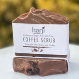 Coffee Scrub Artisan Soap contains Shea Butter for moisturization and smells like coffee with a coffee fragrance oil. This is a scrubby soap with brewed coffee and coffee grounds.
