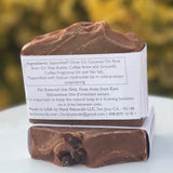 Ingredients: Saponified* Olive Oil, Organic Coconut Oil, Raw Organic Shea Butter, Rice Bran Oil, Organic Cocoa Butter, Coffee Brew and Grounds, Coffee Fragrance Oil and Sea Salt.