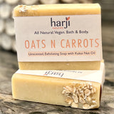 This is an unscented Oatmeal soap that contains Colloidal Oats, Organic Oat milk, Oat flour (for gentle exfoliation), Oat Oil and Kukui Nut Oil (calming for skin irritations) and organic carrot juice. This is a very mild and gentle soap for sensitive skin or kids or those preferring to use a bar of unscented soap.