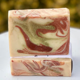 This moisturizing Patchouli Artisan Soap contains Shea Butter for moisturization and scented with dark patchouli essential oil. The beautiful swirls and colors are made with Red Brazilian Clay and Spinach Powder.