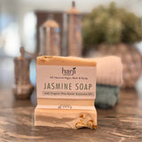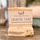 This moisturizing Jasmine Artisan Soap contains Raw, Organic Shea Butter and Cocoa for moisturisation. This soap has a lingering floral smell of Jasmine flowers.
