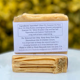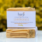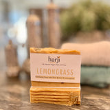 This exfoliating Lemongrass Artisan Soap contains Shea Butter, Lemongrass Powder, Yellow Brazilian Clay for gentle exfoliation and Lemongrass essential oil.